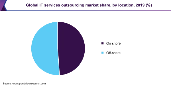 The market has been categorized into on-shore and off-shore segments based on geographic location. 2019, the off-shore sector claimed a more considerable revenue and is poised for significant growth between 2020 and 2027. Offshoring IT operations to emerging economies for cost advantages, currency risk mitigation, and offset obligation fulfillment has historically propelled the off-shore sector.