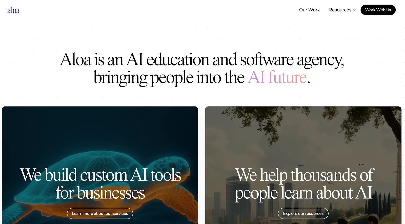 At Aloa, we help businesses design and implement custom AI solutions through a consultative development process. We begin by thoroughly understanding your goals and challenges, rapidly validating ideas with prototypes, and then building and supporting scalable AI systems that can seamlessly integrate into your existing operations.