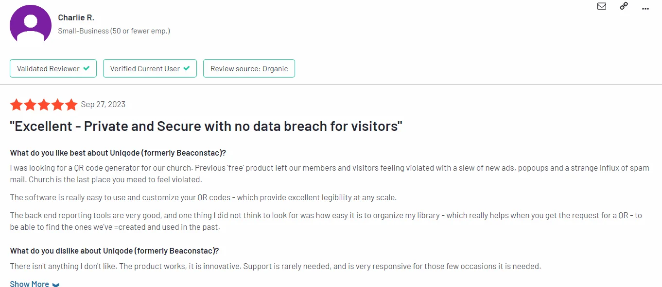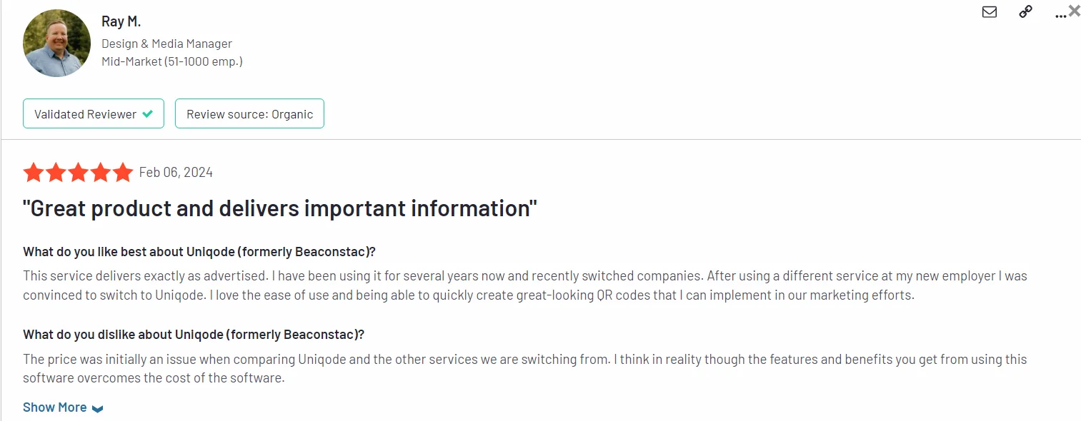 With a superb 4.9/5⭐ rating on G2 and positive feedback for its ease of use, features, and support, Uniqode ensures your QR codes are visually appealing, highly functional, and perfectly aligned with your brand.
