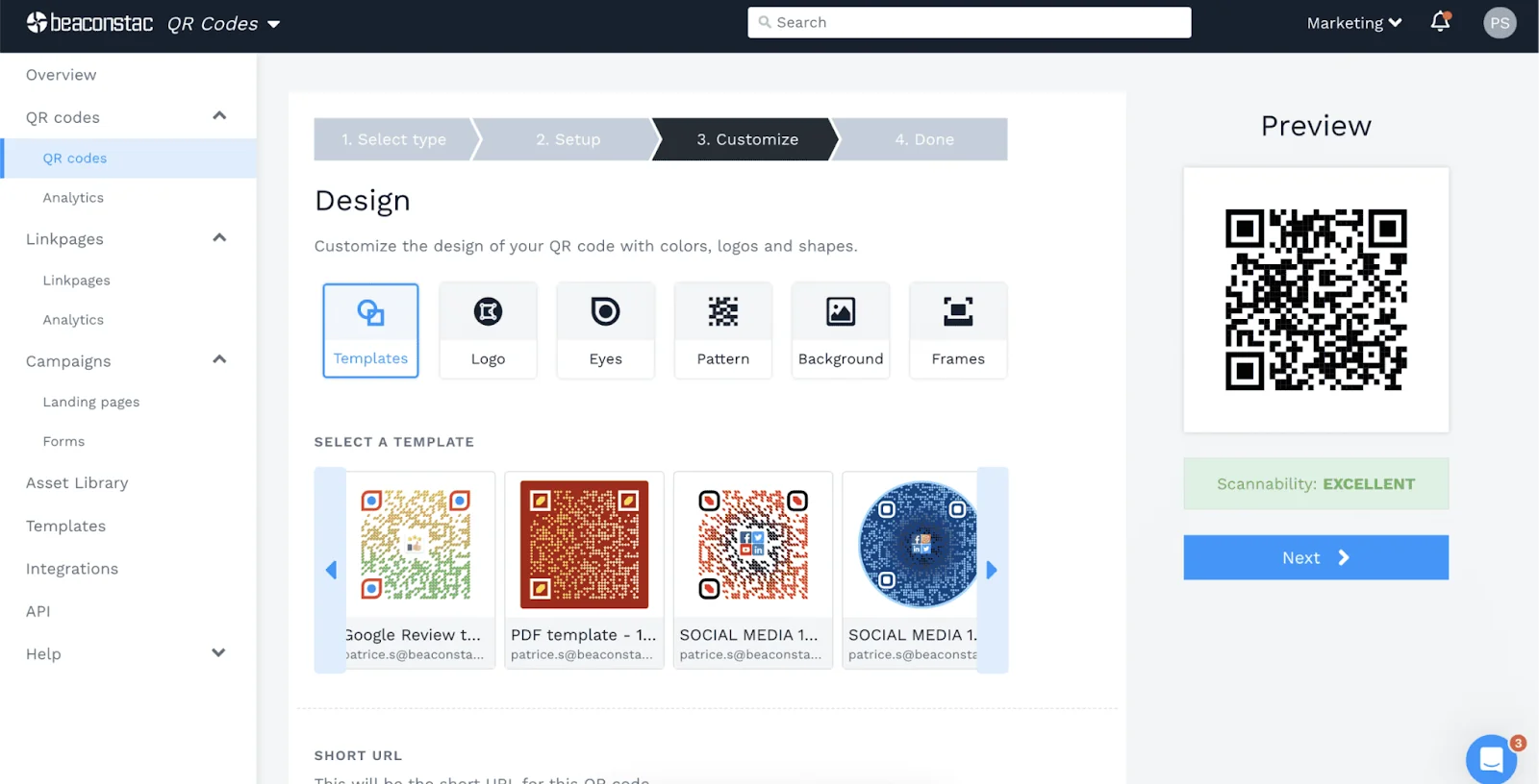 Uniqode offers more extensive QR Code customization options than any other QR Code generator, including ready-to-use templates such as Facebook or coupon QR codes and multiple links within a single QR code (Linkpage). You can also enable condition-based actions upon scanning, such as triggering different responses based on time, day, country, or OS.